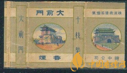 1916年,“大前門”卷煙由英美煙公司創(chuàng)牌。英美煙公司設計的煙標,主版畫面為北京天安門南側的正陽門雄姿,副版圖案是建于明代的箭樓。因北京人習慣稱正陽門為“前門樓子”,故卷煙商標被命名為“前門”。