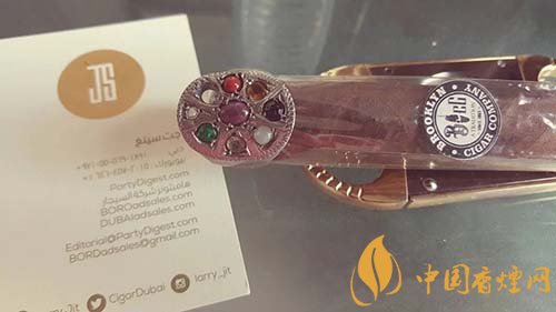 如果說雪茄裹上金箔還能有助于煙灰的保持,同時(shí)冷卻煙灰。那么雪茄上鑲嵌寶石對抽雪茄本身就沒有任何一點(diǎn)用處了,除了炫耀也想不出其他價(jià)值了。