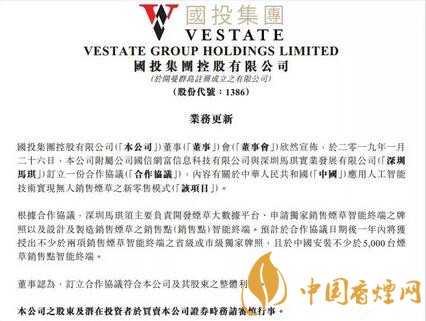 根據(jù)合作協(xié)議,深圳馬琪須主要負責(zé)開發(fā)煙草大數(shù)據(jù)平臺、申請獨家銷售煙草智能終端牌照以及設(shè)計及制造銷售煙草的銷售點(銷售點)智能終端。