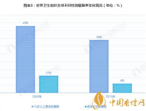 世界衛(wèi)生組織的報(bào)告指出,2000年以來(lái)全球男性和女性的吸煙率均有所降低,但吸煙人數(shù)仍在增長(zhǎng)。具體來(lái)看,全球15歲以上的男性吸煙率從2000年的43%下滑到34%,而女性吸煙率則從2000年的11%下滑到6%。從吸煙人數(shù)的規(guī)模來(lái)看,目前全球共有11億成年煙民以及至少3.67億無(wú)煙煙草吸食者。此外,全球還有大約2400多萬(wàn)名13歲-15歲的青少年吸食煙草,另有1300多萬(wàn)名青少年使用無(wú)煙煙草制品。