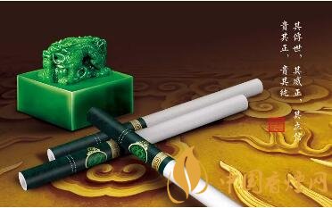取“玉溪(雙中支翡翠)”煙盒靜觀,其龍紋環(huán)繞,王者其色,注定生而不凡,尊貴無上。煙盒正面圖案是清乾隆御寶交龍鈕翡翠玉璽,正上方的“翡翠”兩個字用翡翠色渲染,質感十足,一脈相承。煙盒正面中間,印有“比德于玉”四字,傳遞著“君子高義,玉有五德,比德于玉,溫潤而澤”的文化理念。