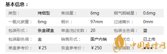 包裝色調(diào):藍(金) 小盒條碼:6901028115377 條包條碼:6901028115384 單包支數(shù):20