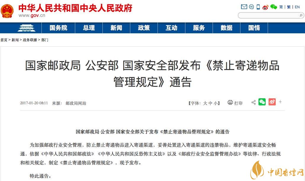 2018香煙郵寄的新規(guī)從適用范圍等多方面對(duì)禁止寄遞物品作出明確的規(guī)范性要求,同時(shí)發(fā)布禁止寄遞物品指導(dǎo)目錄。危害國家安全、擾亂社會(huì)秩序、破壞社會(huì)穩(wěn)定的各類物品,危及寄遞安全的爆炸性、易燃性、腐蝕性、放射性等各類物品,法律法規(guī)等有關(guān)規(guī)定禁止寄遞的其他物品,都屬于禁止寄遞物品范圍。