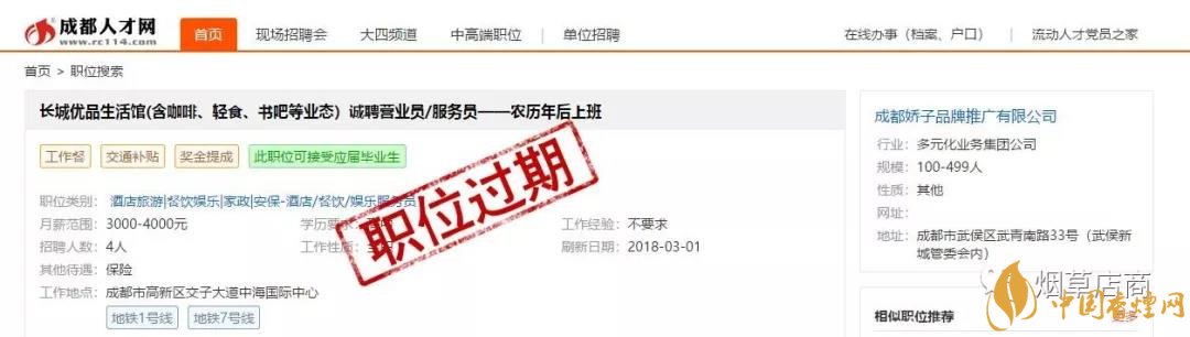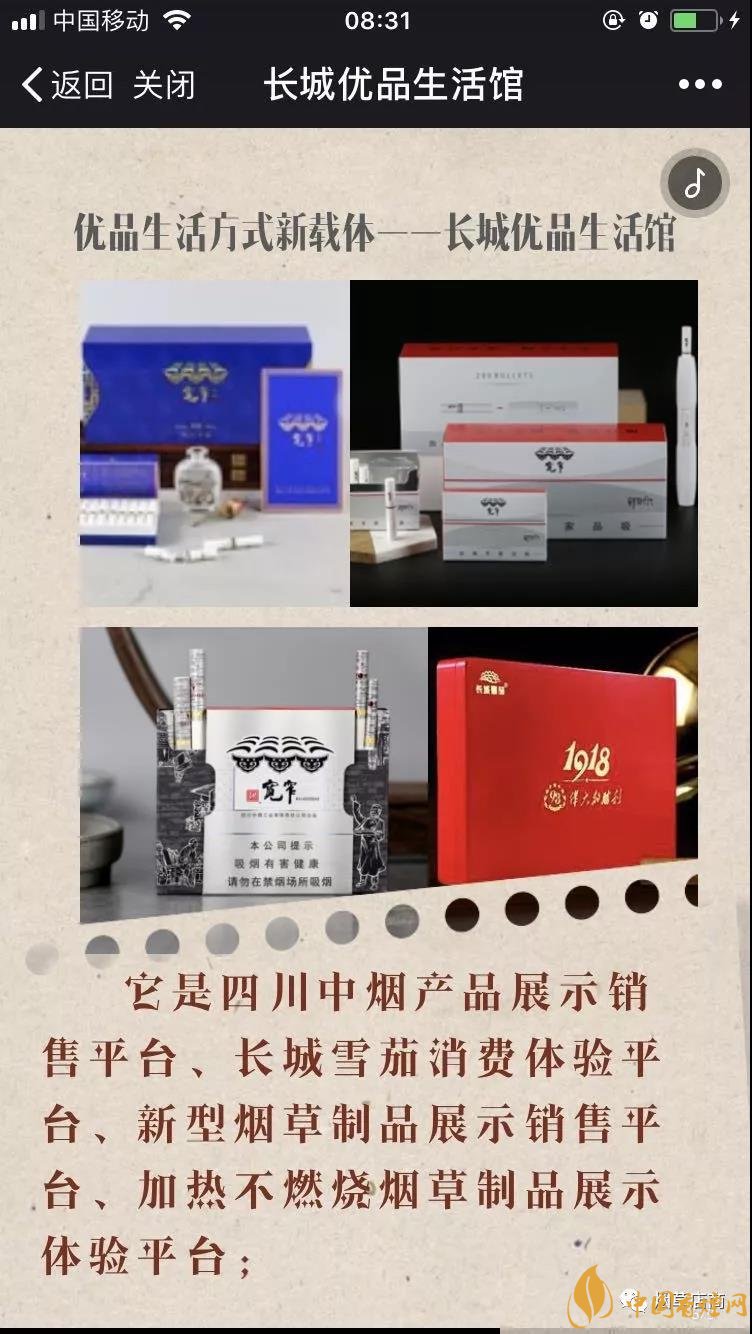 前面為大家介紹了,四川中煙第一次新零售發(fā)聲 創(chuàng)新高質(zhì)量發(fā)展全力謀變(優(yōu)品生活體驗(yàn)店)。朋友圈里確實(shí)有長城優(yōu)品生活館的H5宣傳介紹,而且也確實(shí)聲稱自己是“全國首家煙草集合店”。在介紹里面也有它是“煙草、咖啡、輕食、書籍與文創(chuàng)產(chǎn)品”五大生活元素的完美融合者。它是四川中煙產(chǎn)品展示銷售平臺。據(jù)說本月成都長城優(yōu)品生活館開啟。此外,小編也在成都人才網(wǎng)看到了已經(jīng)過期的“長城優(yōu)品生活館(含咖啡、輕食、書吧等業(yè)態(tài))誠聘營業(yè)員/服務(wù)員——農(nóng)歷年后上班”的招聘啟事,通過職位描述可以感受店內(nèi)的大概服務(wù)