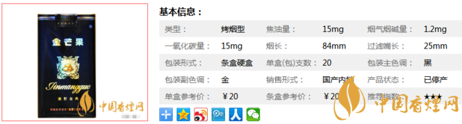 以上便是由香煙網(wǎng)小編為大家介紹的關(guān)于金芒果盛世金典官方價(jià)格表 河南卷煙的高端產(chǎn)品!的相關(guān)信息,想要了解更多有關(guān)內(nèi)容請點(diǎn)擊:金芒果煙多少錢一包 金芒果香煙價(jià)格表圖片大全(5款)