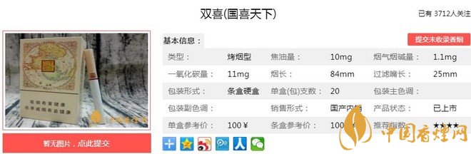 以上便是由香煙網(wǎng)小編為大家介紹的關(guān)于雙喜國喜天下多少錢一包 雙喜國喜天下口感及參數(shù)的相關(guān)信息,想要了解更多有關(guān)內(nèi)容請點(diǎn)擊:七匹狼通??诟屑皡?shù) 七匹狼通福價(jià)格21元一包