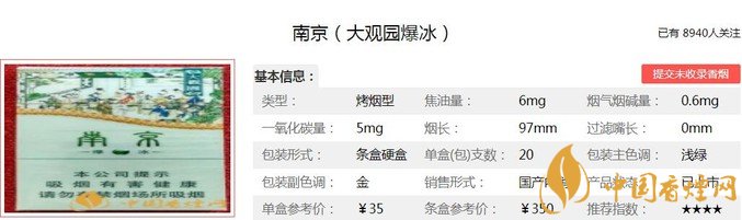 江蘇中煙的細(xì)支產(chǎn)品在國(guó)內(nèi)煙草市場(chǎng)上是首屈一指的,可以說(shuō)是引領(lǐng)了行業(yè)的發(fā)展。從中低端的炫赫門、十二釵系列,中端的雨花石,到高端的沉香、細(xì)支九五和紅樓卷等,價(jià)格區(qū)間跨度較大,適合不同的消費(fèi)群體,而且各種產(chǎn)品不但包裝各有特色,其口感也是各有所長(zhǎng),很受煙民的喜愛(ài)。下面就由香煙網(wǎng)小編帶大家一起來(lái)了解南京大觀園爆冰的相關(guān)信息。
