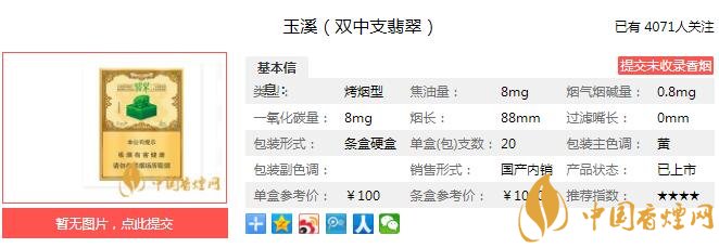 以上便是由香煙網(wǎng)小編為大家介紹的關(guān)于玉溪翡翠香煙價(jià)格 玉溪翡翠多少錢一包的相關(guān)信息,想要了解更多有關(guān)內(nèi)容請點(diǎn)擊:泰山望岳價(jià)格 山東中煙低焦產(chǎn)品的經(jīng)典之作