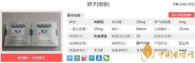 嬌子(寬窄)香煙煙支做工精細,沒有掉絲的情況。最關(guān)鍵的是,這款香煙降焦的同時保證了口感的獨特。芳香甜潤的氣味,柔和雅致的煙氣,溫潤舒適的口感,無不詮釋著它是一款選料優(yōu)質(zhì)、做工精良的上乘香煙。下面便是嬌子(寬窄)的基本參數(shù):焦油量:10mg 煙堿量:1.0mg 一氧化碳量:10mg.