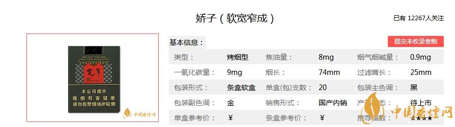 以上是香煙網(wǎng)小編為大家介紹的嬌子(軟寬窄成)的價(jià)格參數(shù)以及煙民們的點(diǎn)評,希望為大家提供幫助。想了解更多香煙資訊,請關(guān)注香煙網(wǎng)!
