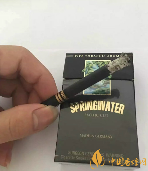 我們來看下這款春泉香煙的包裝,整體彩色黑色主色調(diào),正面一幅泉水圖案,圖案下面是“SPRINGWATER”包裝盒上沒有焦油含量一些理化指標(biāo),所以不太清楚。煙嘴上打的四排排焦孔來看,勁道不大。主圖案品牌醒目,總體視覺大氣端莊,采用黑色的煙嘴,十分精美漂亮。