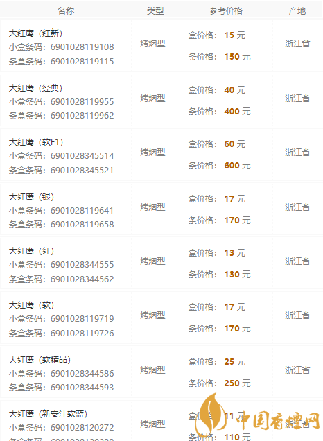 以上就是香煙網為您提供的2020大紅鷹香煙價格表和圖片信息,想要了解更多的相關知識,請來關注香煙網!
