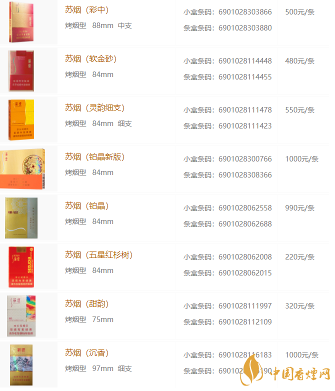 以上就是有香煙網(wǎng)小編整理的有關(guān)蘇煙的價(jià)格信息,想要了解更多點(diǎn)擊香煙網(wǎng)查看更多咨詢吧!