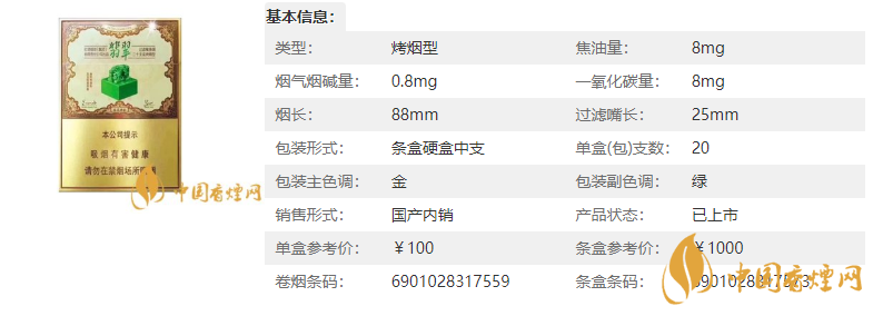 | 類(lèi)型 :烤煙型 | 焦油量 :8mg | 煙氣煙堿量 :0.8mg | 一氧化碳量 :8mg |