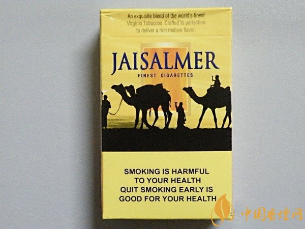 賈沙梅爾香煙是印度的著名卷煙品牌,它有著類似美國駱駝的駱駝圖標,它是印度當?shù)貥O有特色的一款香煙,深受印度煙民的喜愛和推崇,據了解人們對它的喜愛,如同國人對黃鶴樓香煙一樣。這款印度jaisalmer香煙多少錢一包?香煙網小編將對中免JAISALMER賈沙梅爾香煙價格進行介紹。
