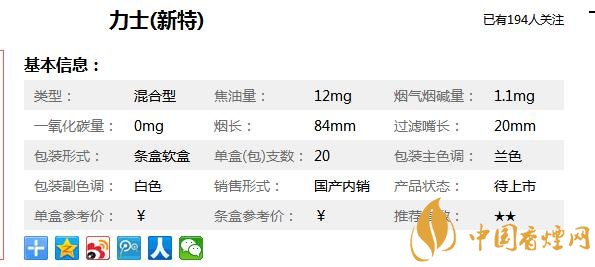 力士煙參數(shù)信息
