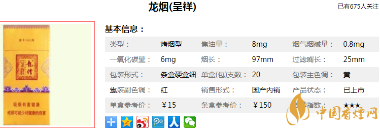 作為一款零售價格150元/條的細支卷煙,龍煙(呈祥細支)所用配方與哈爾濱龍煙(系列)價格表零售價550元/條的“龍煙(祥和)”以及零售價320元/條的龍煙(萬福)相當(dāng)。