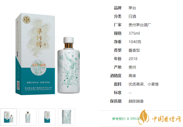 貴州茅臺(tái)醇星座酒處女座53度醬香型白酒375ml單瓶