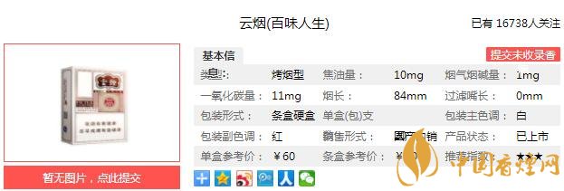 云煙百味人生優(yōu)選世界香料,取典型天然香韻,提取爆珠,賦予獨(dú)特香味風(fēng)格吸味,與本香完美融合。選擇捏爆爆珠,感受爆珠香氣與煙草本香完美融合帶來的獨(dú)特的風(fēng)格吸味,煙味醇厚,豐富甜潤,領(lǐng)尚五味。經(jīng)香煙網(wǎng)小編市場調(diào)查云煙百味人生售價(jià)為60元/包。