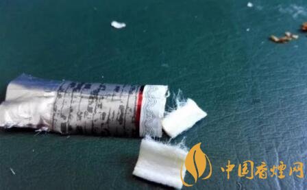 剪開鏤空樣式的過濾嘴,會發(fā)現(xiàn)有一層薄薄的黃色紙張,附著于過濾嘴紙張之上。鏤空過濾嘴的長度,約為6mm。