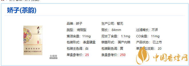 嬌子(茶韻)有一股淡淡的清香,可以舒緩吸煙者的心情!如果喜歡帶點(diǎn)香氣的煙的人可以考慮下此款產(chǎn)品!不過再清香的香煙都是含有尼古丁的,所以吸煙愛好者切勿上癮哦!