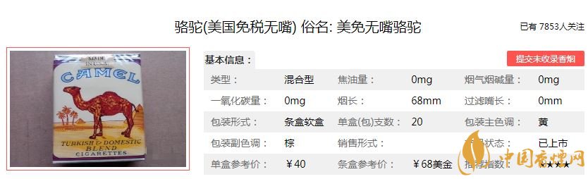 煙民們應(yīng)該都知道,無嘴香煙對我們的身體傷害很大,從80年代后期,過濾嘴香煙出現(xiàn)后,無嘴香煙便慢慢被淘汰了,但是對于一些老煙民來說,無嘴香煙的口感是經(jīng)典,始終無法超越。今天小編就為大家介紹一款無嘴香煙——無嘴駱駝(美國免稅)。下面讓我們一起去看看這款無嘴駱駝的價格以及抽過的煙民的品吸點評。