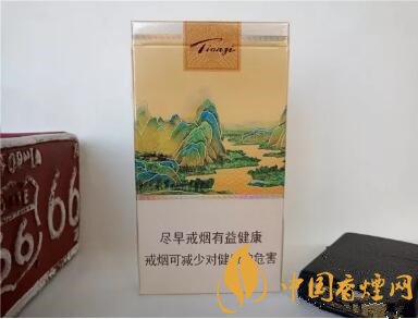 煙盒的背面則就是千里江山畫(huà)的另一面,上面是天子的拼音。在畫(huà)的下面則就是警示標(biāo)語(yǔ)了。