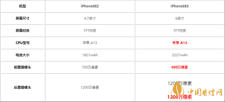 iPhoneSE3前置800萬像素,后置12000萬+1200萬像素雙攝。