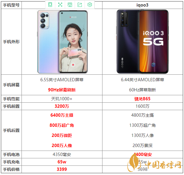 opporeno5pro和iqoo3哪款手機更值得入手?許多小伙伴對此都十分猶豫,這兩款手機在參數(shù)方面有什么區(qū)別?哪款手機的性價比更高?下面香煙網(wǎng)小編將為大家介紹opporeno5pro和iqoo3參數(shù)對比,感興趣的朋友一起來看看吧!