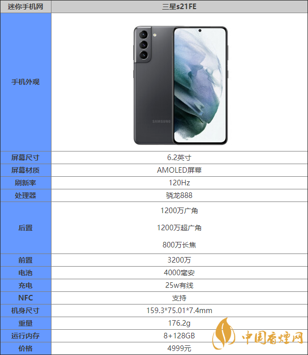 以上就是由香煙網小編為大家?guī)淼挠?strong>關三星S21 FE參數(shù)配置的相關消息,資料來源于網絡,如需了解更多詳情,請持續(xù)關注香煙網,小編將會為大家?guī)砀嘞嚓P資訊。