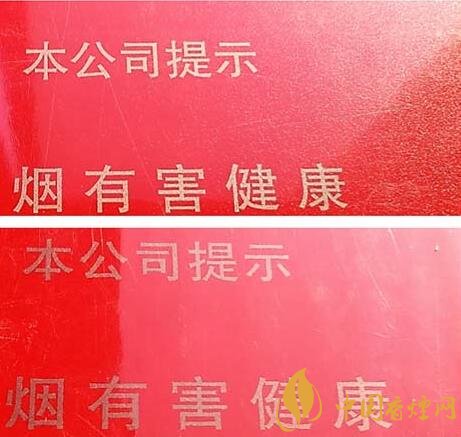(3)真品卷煙商標(biāo)紙表面印刷呈現(xiàn)磨砂狀。假冒卷煙商標(biāo)紙表面光滑。(圖3上真下假)