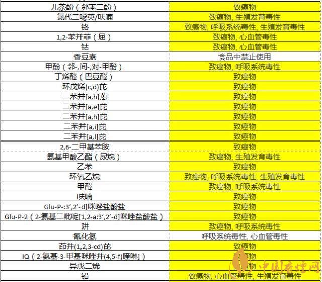 事實(shí)上,香煙里有超過(guò)7000種化學(xué)物質(zhì),其中93種明確有毒物質(zhì),78種是明確致癌物,78種?。ㄒ?jiàn)下表)