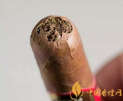 我們剪開茄帽的目的是為了打開雪茄封閉一端,讓雪茄透氣,沒有雪茄剪的時候也可以采用十字交叉發(fā),用小刀在茄帽上劃出開口,這樣就能抽了。