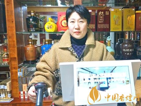 零售戶遲敏正在使用剛配發(fā)的云POS系統(tǒng)售煙與結(jié)賬