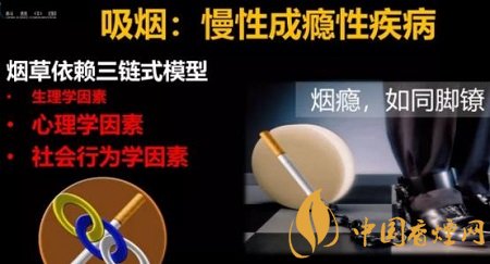 但是煙草成癮不是單單只有生理學(xué)因素,不然,中國(guó)就不會(huì)有3億吸煙者,不會(huì)十年吸煙率幾乎沒有變化。實(shí)際上,在戒煙的過程中,比克服生理學(xué)因素更難的是心理學(xué)因素和社會(huì)行為學(xué)因素。煙癮如同腳鐐,拴在人身上很難擺脫。