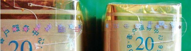 2.看小盒底部包裝紙,真煙包裝紙折角處呈現(xiàn)弧狀,且間隙較大;而假煙的底部包裝紙折角處呈銳角,而且間隙比較小。肉眼可直接對比出來。