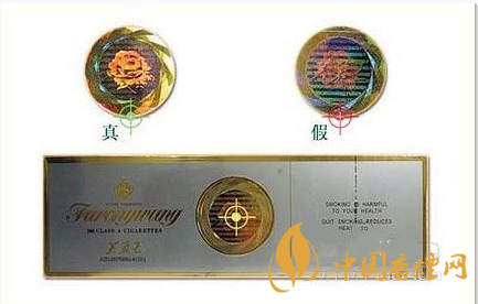 (2)看防偽標(biāo)記:條盒的正面芙蓉花防偽標(biāo)記,真煙的印刷在同一側(cè)面看到的只有一個(gè)圖樣;假煙的印刷在同一側(cè)面看到是幾個(gè)在一起的圖樣。