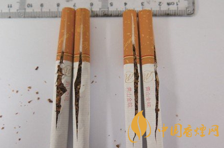 煙支降焦工藝差異對比:真品煙支采用25mm濾嘴棒長度,加長濾嘴棒長度能有效降低卷煙內的焦油含量;假煙采用18mm濾嘴棒長度,無法達到有效降低焦油含量的作用,與真品煙支降焦工藝存在明顯差異。